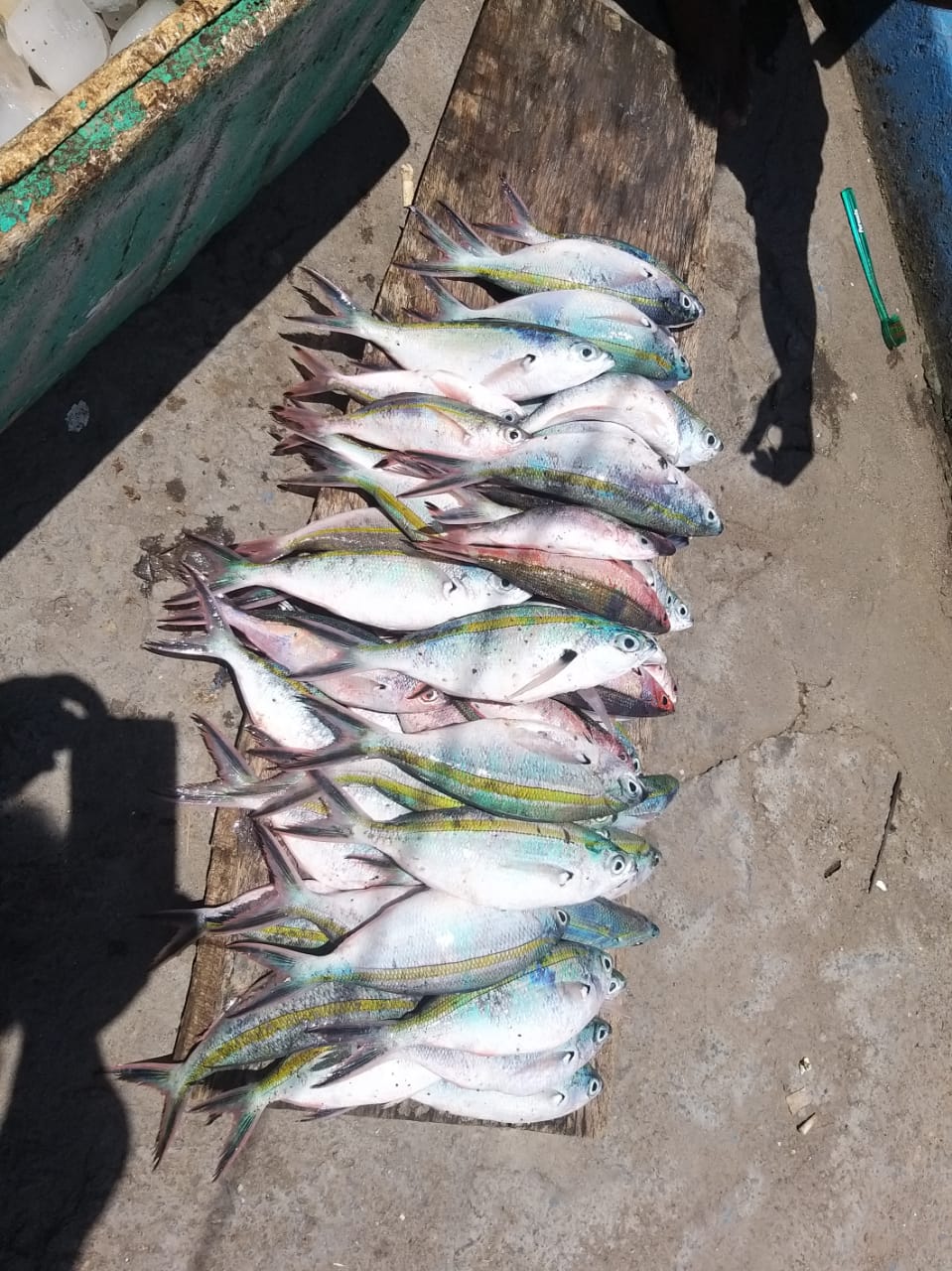 Ada 70 ekor jenis ikan campuran, 1 buah jerigen potong warna putih, 1 buah jerigen potong warna biru, 1 buah korek api gas warna hitam merk mangun, 1 bungkus rokok Arrow isi 15 batang, 1 buah toples warna Arrow, 2 buah korek api sampurna dan 1 bungkus rokok Arrow isi 16 batang